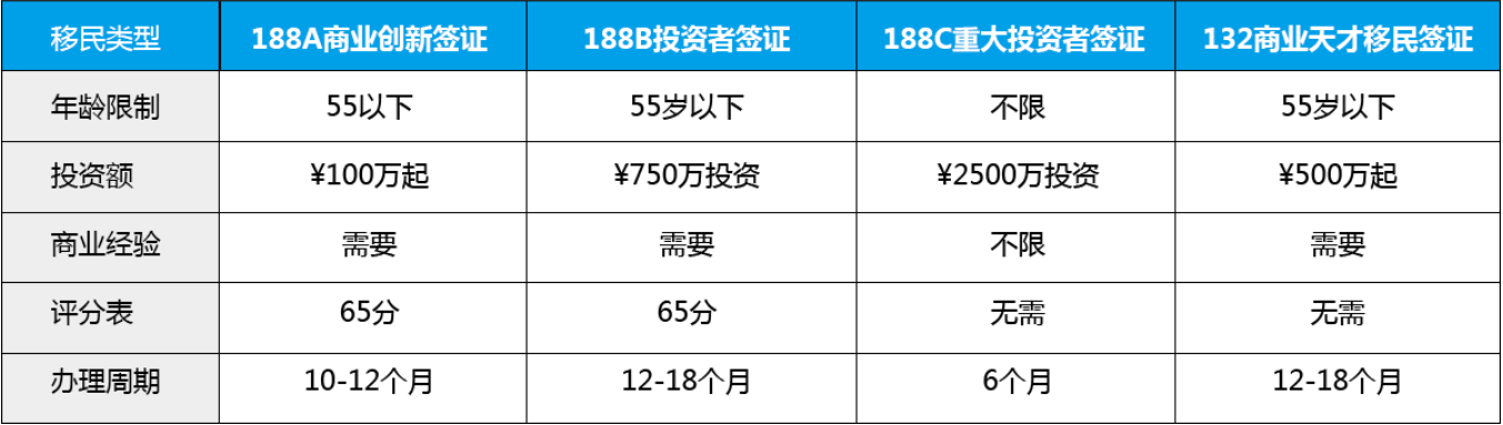 澳洲4大投資移民方式全覆蓋