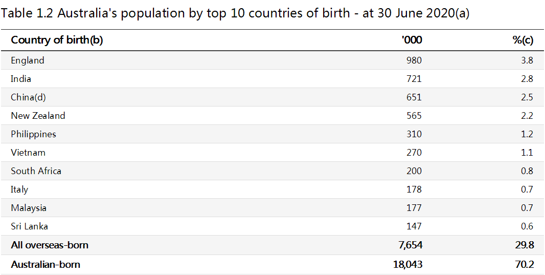 澳洲近三成常住人口出生于海外,中國(guó)移民位列第三!
