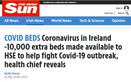 愛爾蘭衛生部負責人宣布將增加10,000張床位以幫助抵抗疫情,并同時在體育館和大學建設大型醫院,盡快滿足普通病患醫療需求。