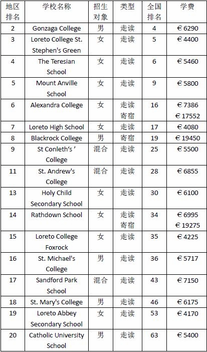 南都柏林地區(qū)TOP20學(xué)校之私校