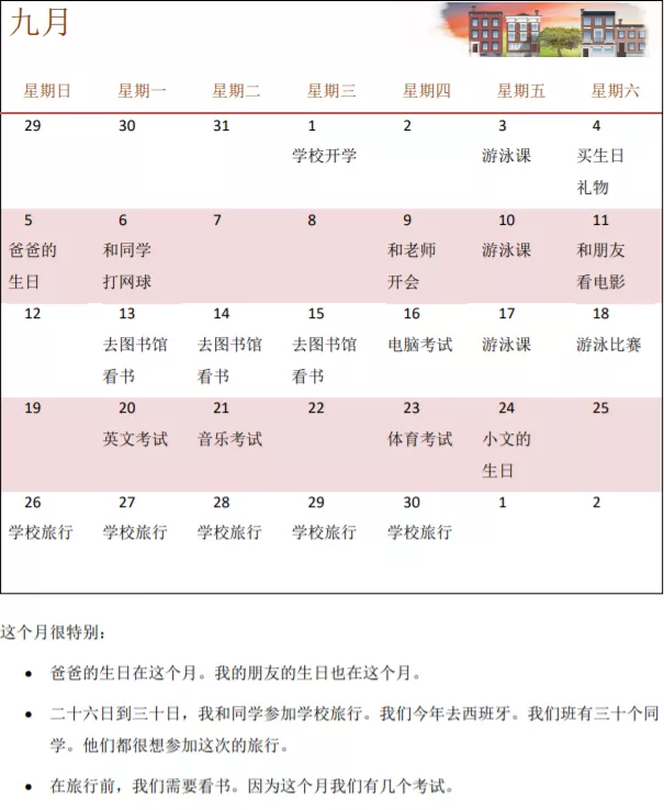 閱讀以下日歷和筆記,并用英語回答問題。