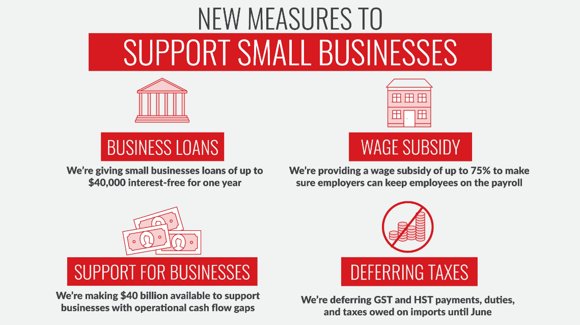 3月26日,特魯多公布針對小商家的最新補助措施,小商家工資補助增至75%,從3月15日開始計算。
