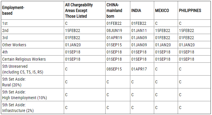 EB-5非預(yù)留類(lèi)別:排期為2016年1月1日,無(wú)變化