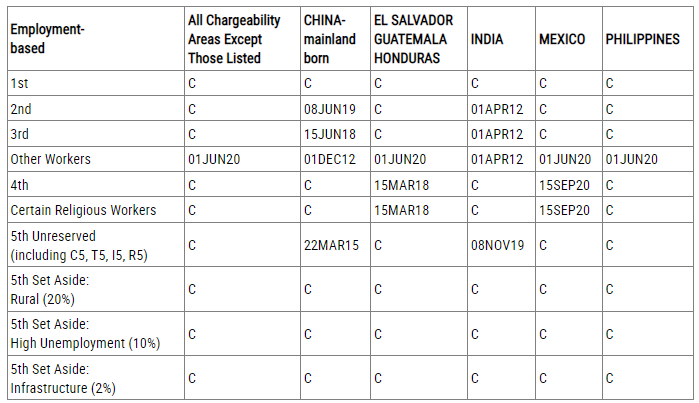 EB-2類別:排期為2019年6月8日,無(wú)變化