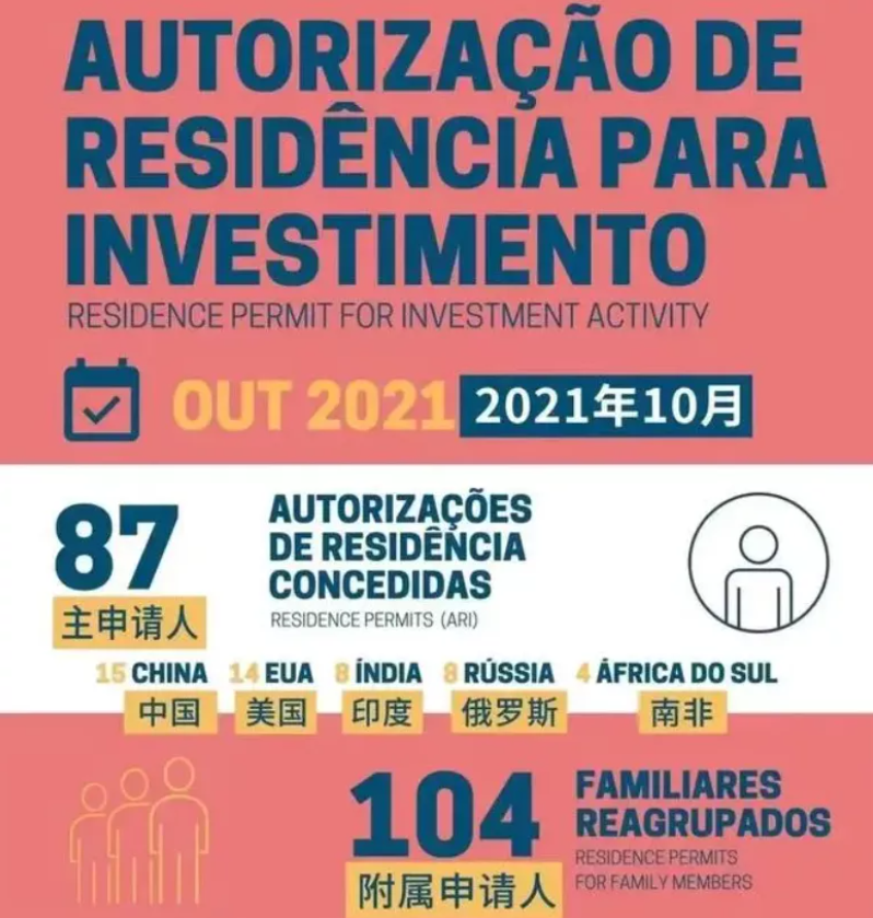 即使在這兩年的疫情圍困下,葡萄牙移民熱度依舊不減。日前,葡萄牙移民局發(fā)布了10月份的黃金簽證數(shù)據(jù)。10月份,87名主申請人和104名附屬申請人獲批葡萄牙黃金簽證,總投資額達4640萬歐,相較于9月增加了34%,是今年自4月以來表現(xiàn)最好的月份。