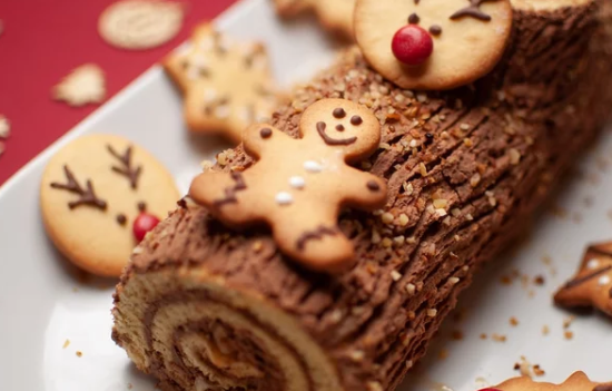 法國新年大餐最后的壓軸甜點,一定是樹干蛋糕搭配香檳。那是一種外觀裝飾得特別漂亮的奶油夾心蛋糕,年終節慶期間每間面包店都會推出。