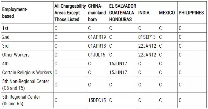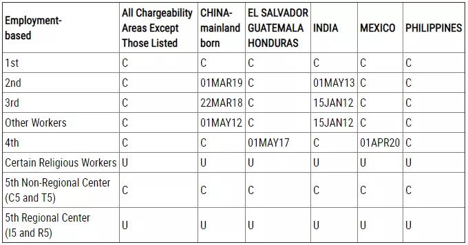 EB-5(直投)無排期;EB-5(區(qū)域中心)繼續(xù)停滯。