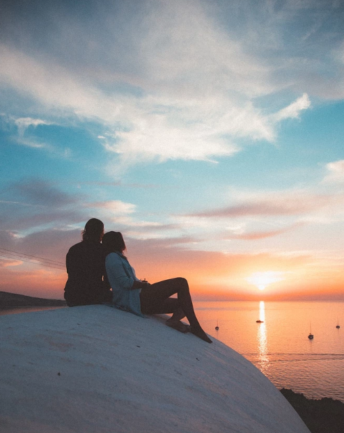 除了純正的“希臘藍(lán)”,這里最知名的招牌便是夕陽(yáng)了。每到傍晚,陽(yáng)光輕撫海面,為碧藍(lán)的海水披撒上一片絢麗的金紗。