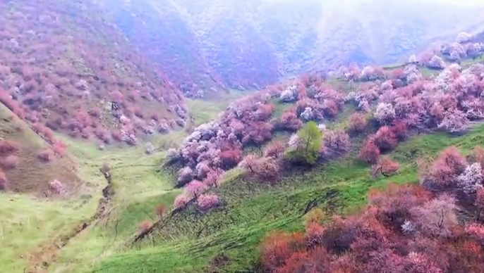 新疆杏花溝是一片中世紀(jì)遺留下來(lái)的三萬(wàn)多畝野杏林。每年4月,漫山的杏花如期盛開(kāi),