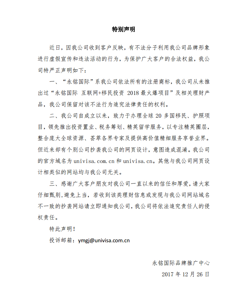 針對不法分子利用我司品牌虛假宣傳特別聲明